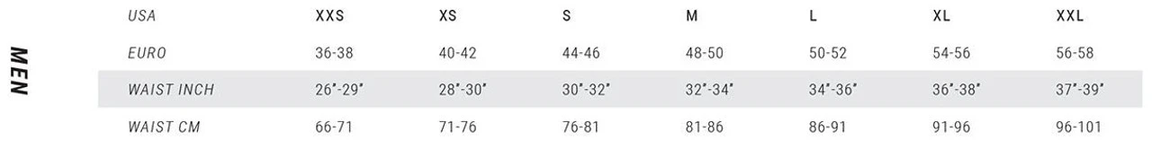 | XXS | 36 – 38 | 26 – 29″ | 66 – 71 |