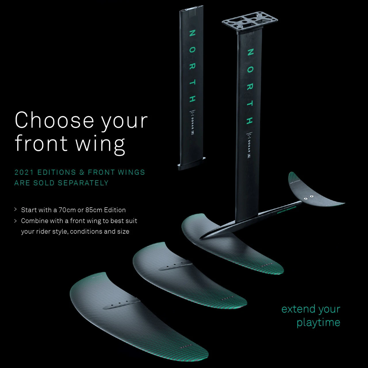 Foil to board mounting fasteners is included with North foil boards. Front wings are sold separately.