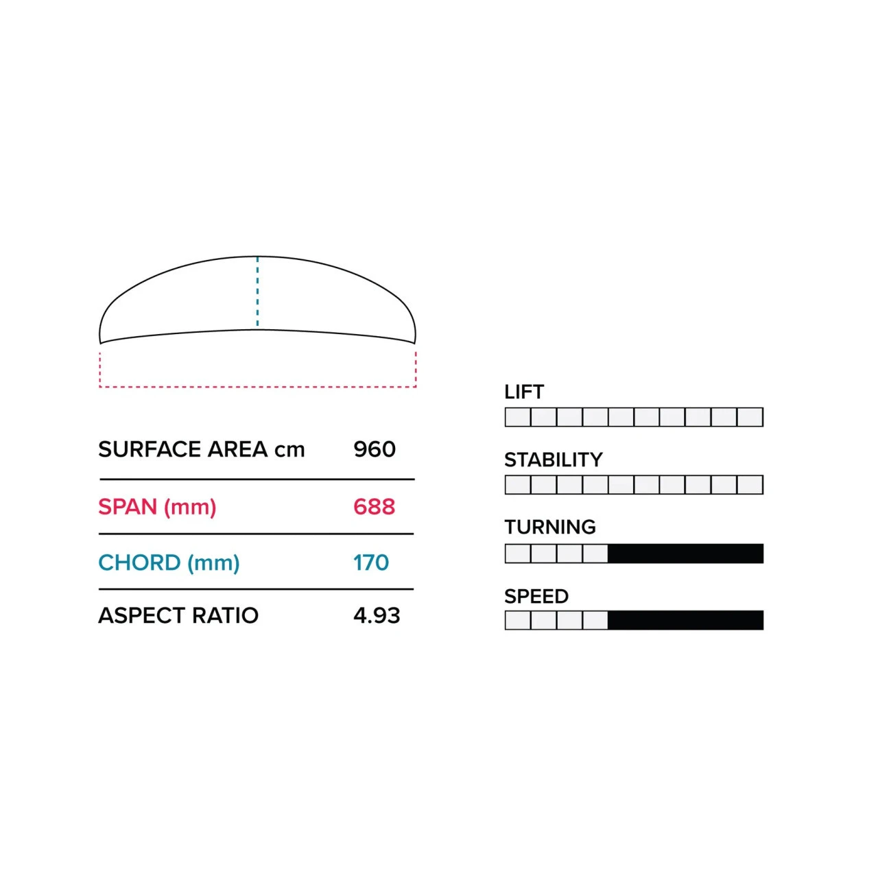 - Hover Glide FWake V4 Foil, 62 cm (24″) mast, Gamma 68 Front Wing, 42cm Rear Wing, Neoprene Wing Covers, Complete Foil Carrying Case