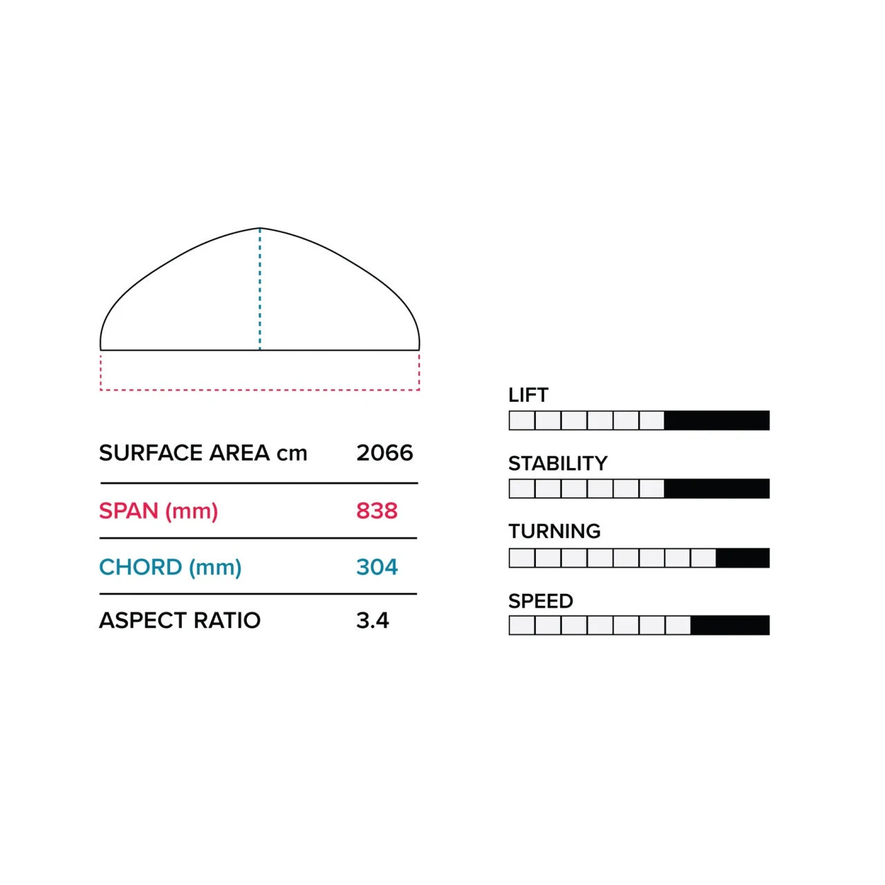 - Self-regulating lift at higher speeds to prevent over-foiling.