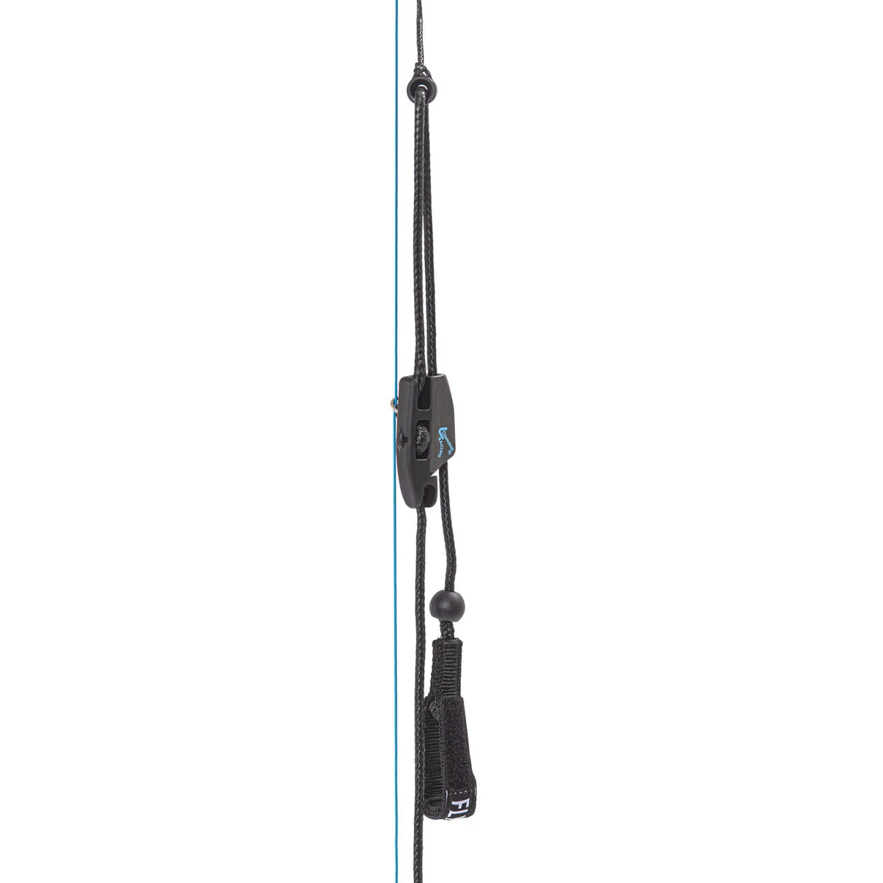 The FLS end line is coated in blue and equipped with a swivel ball. The leash hardly gets shortened or twisted. This measure prevents the shortening of a single front line, which would result in the kite steering independently to one side.