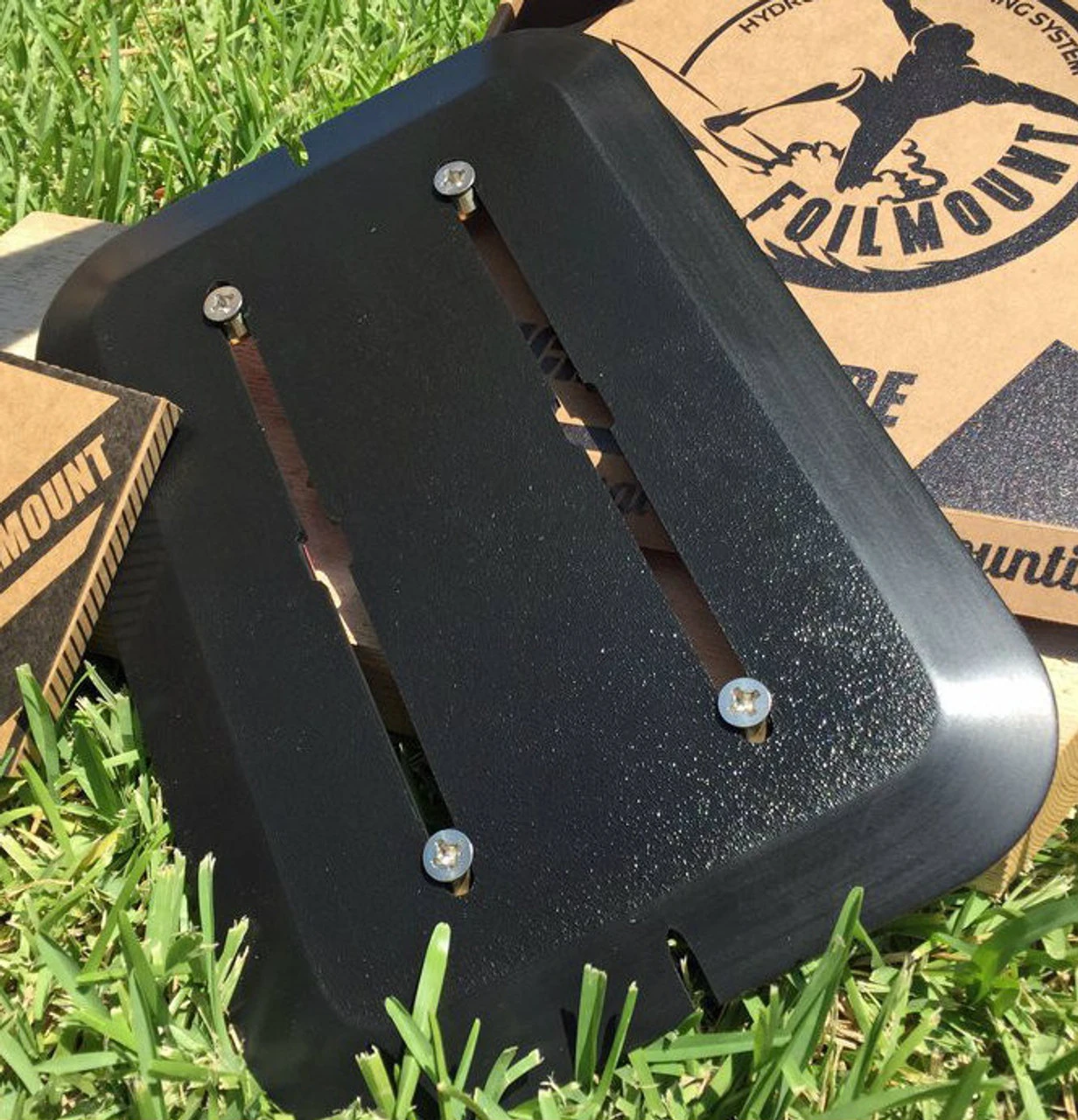 The FoilMount is a universal hydrofoil mounting system, this means that you can put a hydrofoil track on just about any board you already have. The FoilMount uses a specially designed 3M adhesive tape to stick to the bottom of your board. It will accommodate any foil that uses the 90mm track system (this is industry standard). It is a easy way to fix a broken track system. It is also great for retrofitting boards with through bolt holes to give them the adjust-ability of a sliding track system.