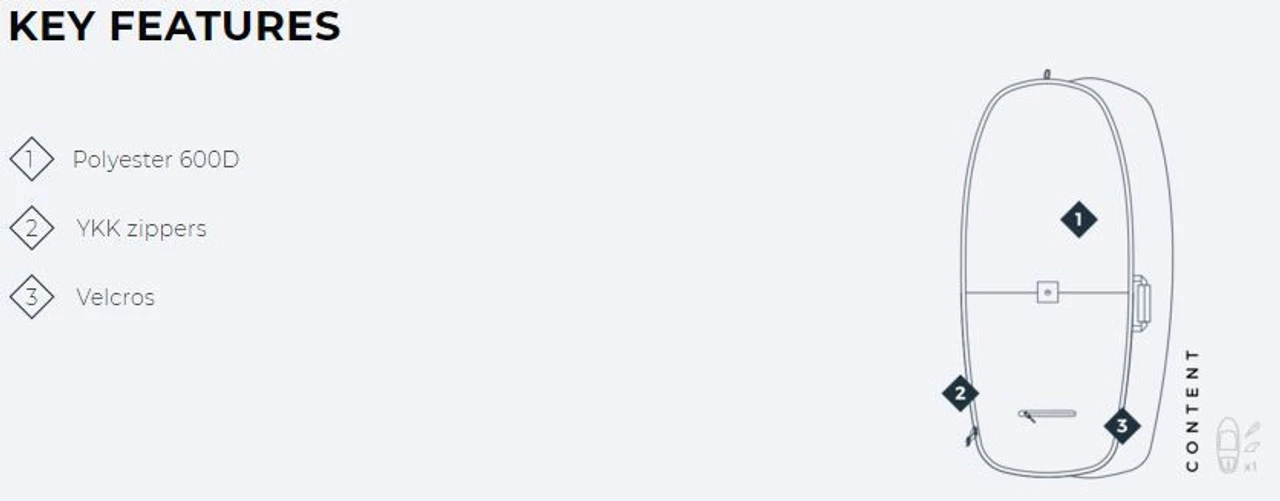 The foil bags work with a central slot, which allows the wingsurf board to enter without having to disassemble the foil. We use velcro to avoid any damage to the board or mast.