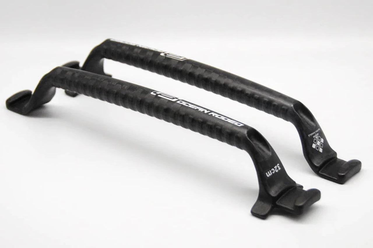 Compression molded carbon, these handles are both strong and lightweight. Featuring a 25 mm diameter embossed grip with non slip finger ridges for extra control.