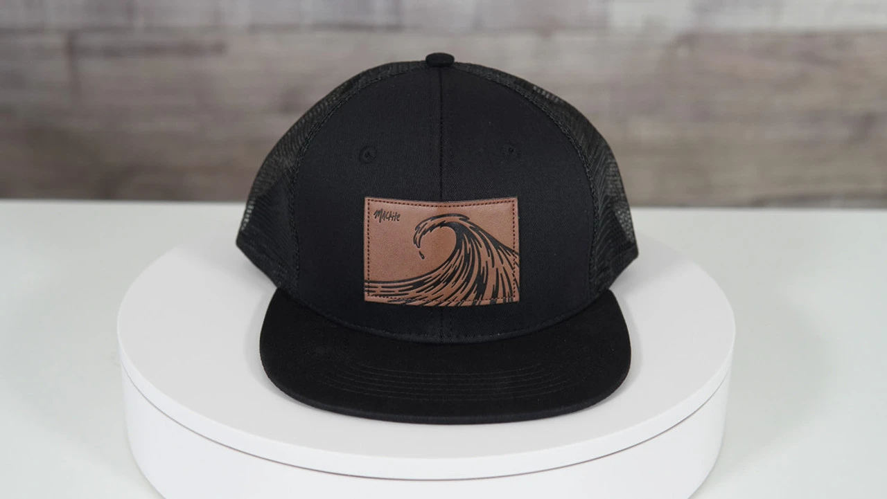 This black beauty is the perfect on and off the water statement piece. An everyman trucker dressed up with an epic wave set against a leather patch makes this a truly versatile piece – one that can be worn at the beach, on the water, or even in the boardroom.Â